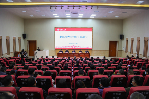 12月28日下午,学校举行北部湾大学干部大会,宣布中共广西壮族自治区委员会、自治区人民政府关于北部湾大学党委书记、校长职务的任免决定:赵君同志任广西科技大学党委书记、免去其北部湾大学党委书记职务,韩峻峰同志任北部湾大学党委书记、免去其北部湾大学党委副书记、校长职务,林基明同志任北部湾大学党委副书记、校长。自治区党委组织部部务委员陈川同志宣读了自治区党委和自治区人民政府的任免文件并作讲话。自治区党委教育工委专职副书记李晓勇同志主持大会。