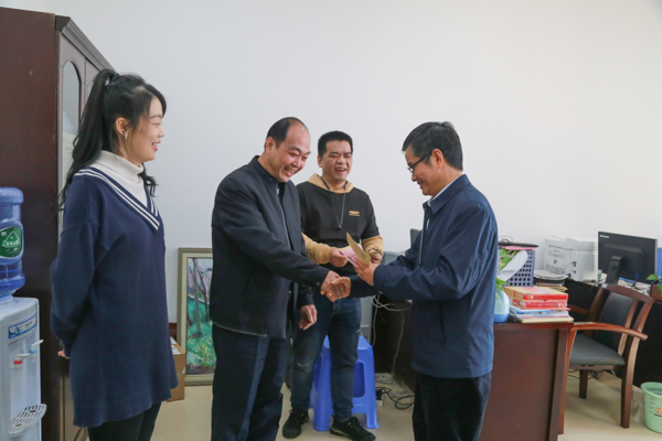 2月12日,大年初一,正值人们阖家团聚、欢度春节的美好时刻,学校党委副书记陈锦山看望慰问春节期间坚守岗位的教职员工,衷心感谢他们的辛勤奉献,致以诚挚的节日问候与新春祝福。