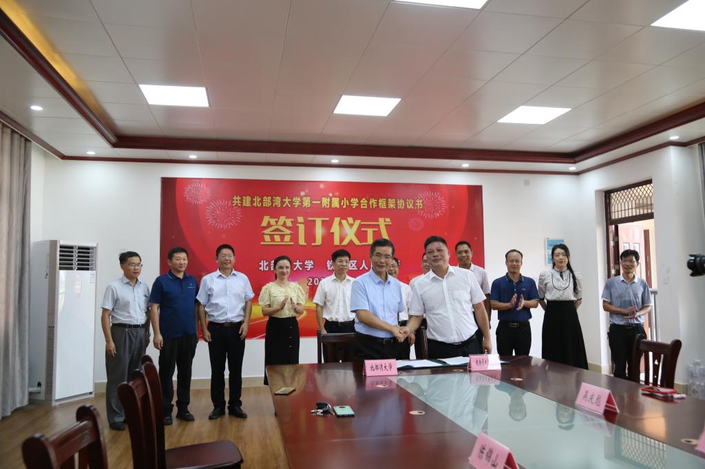 共建北部湾大学第一附属小学合作框架协议书签订仪式现场