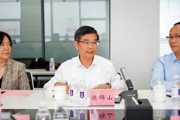 陈锦山副书记简要介绍学校在校企合作、港航物流人才培养等方面取得的成效