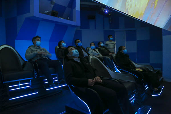 郑娟部长(第二排左二)到鲸豚5D球幕影院体验