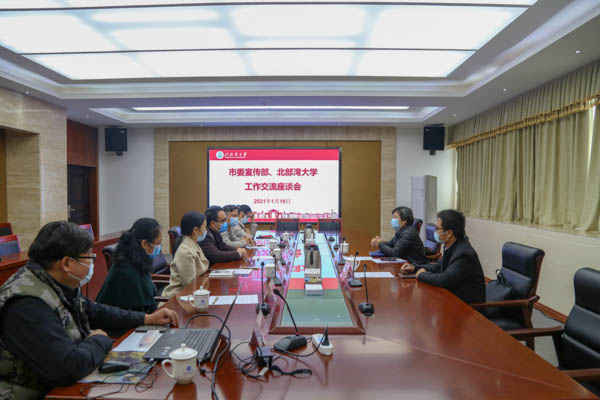 1月19日上午,钦州市委常委、宣传部部长郑娟到校就城市品牌形象进行调研并在办公楼327会议室举行座谈会。我校党委常委、宣传部部长马秀明,海洋学院院长许尤厚,中华白海豚研究团队吴海萍教授及成员陪同。