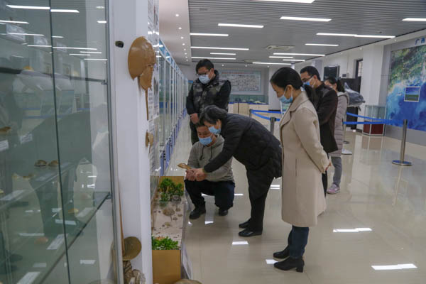 郑娟部长(右二)到学校海洋生物标本馆参观