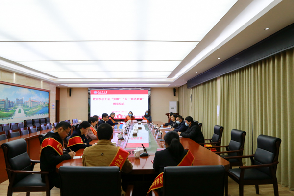 1月15日下午,钦州市“劳模”“五一劳动奖章”颁奖仪式在办公楼523会议室举行。学校党委副书记陈锦山、钦州市总工会副主席杨玉红出席颁奖仪式。