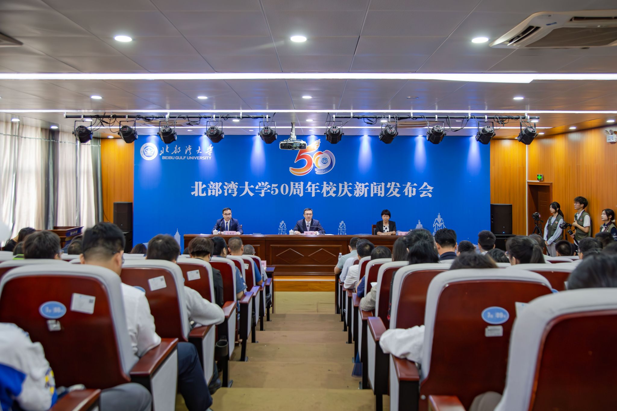 北部湾大学的高等教育始创于1973年的钦州地区师范学校,师范教育源于1906年从绥丰书院更名而来的钦州中学堂开设的简易师资班。从地区师范到师专、学院再到大学,北部湾大学五十载筚路蓝缕岁月峥嵘,始终初心如磐,艰辛求索,取得了令人瞩目的成就。为凝聚传承“博观内省,达道知行”校训,凸显“海洋性、应用型、国际化”办学特色,汇聚八方合力,奋力推进海洋特色鲜明的高水平应用型大学建设,扩大学校影响力,围绕“展示成就、提升品质、不忘初心、砥砺前行”的主题,学校将于2023年11月至12月,通过举办系列学术活动、形式多样的校友交流活动、文艺晚会、庆祝大会、编撰校史、建设校史馆等形式,全面总结办学经验,充分展示办学成就,庆祝北部湾大学建校50周年暨举办师范教育办学117周年。