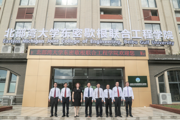 9月14日,广西首个本科层次非独立法人中外合作办学机构——北部湾大学东密歇根联合工程学院(以下简称“联合工程学院”)在北部湾大学揭牌。这一学院的揭牌成立,填补了广西高等教育本科层次中外合作办学机构领域的空白。