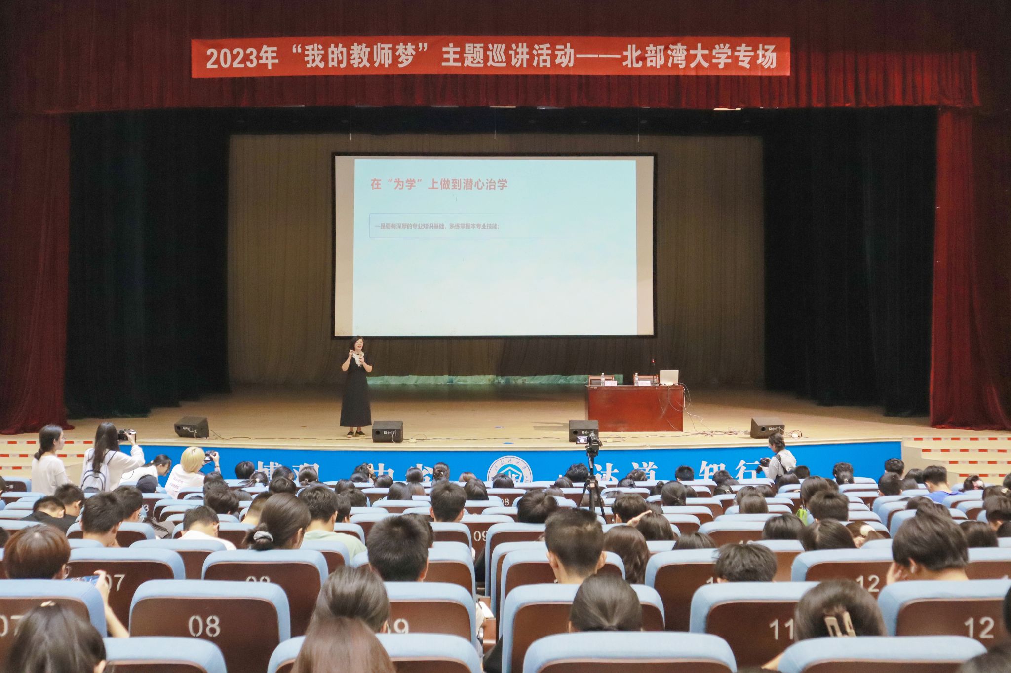据悉,此次“我的教师梦”主题巡讲北部湾大学专场活动是由教育厅主办,旨在以真人真事向广大师范生诠释教育真谛,展现“心有大我、至诚报国的理想信念”,引导广大青年积极投身教育事业。(安子轩 朱淑琪 摄)