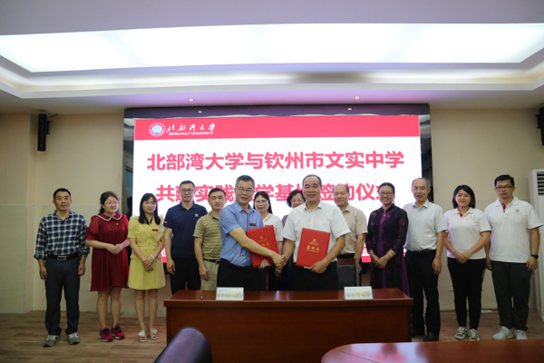 6月2日上午,学校与钦州市文实中学共建实践教学基地签约仪式在办公楼523会议室举行。广西正大伟业教育投资集团董事长、钦州市文实中学董事长谭宏德,校党委常委、副校长唐高华代表双方签署共建实践教学基地协议。执行校长黄凤兰,副校长何夏湘出席并见证仪式。