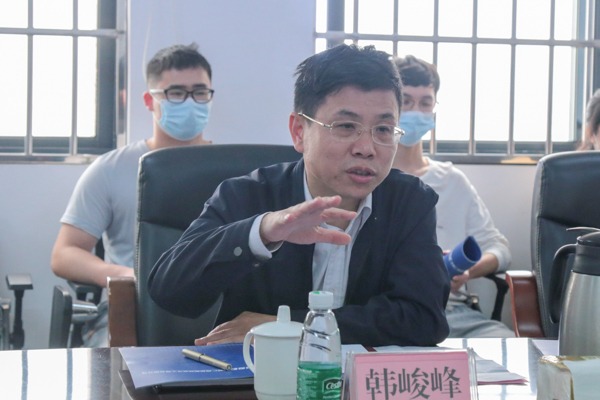 在中船广西,学校党委书记韩峻峰向企业介绍学校