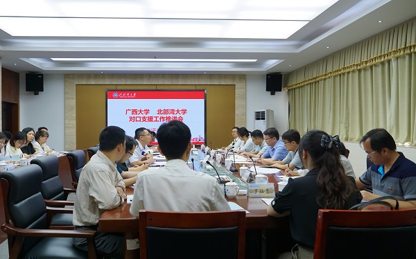 会上,陈磊对赵双良一行的来访表示热烈欢迎,并对广西大学多年来给予学校的大力支持和帮助表示衷心感谢。他表示,两校有着良好的合作基础和深厚友谊,希望广西大学继续在学科学位点建设、师资队伍建设、人才培养、特别是海洋特色学科建设等方面为湾大提供更为深入的对口支援帮扶。他要求各单位主动谋划、积极对接,把对口支援工作做深做实,推动学校实现高质量发展,争取早日建成海洋特色鲜明的高水平大学,打造海洋科技人才新高地,为广西人民交上满意的答卷。
