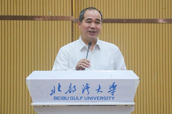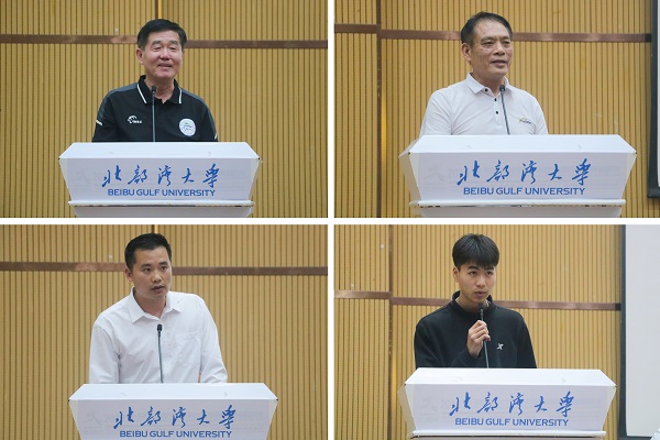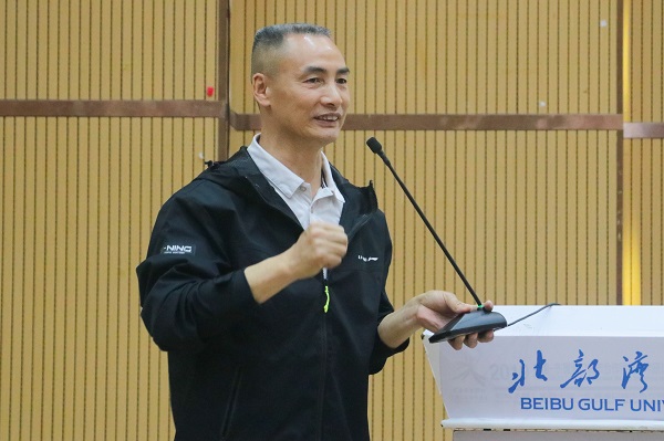 体育学院院长李乃琼分别从教师、学生、学院三个方面回顾了学院的峥嵘岁月以及取得的历史成绩。他表示,十八年风雨兼程,体育学院一路走来,离不开学校领导的殷切关怀和指导,希望体育学院的师生能扬起信念的风帆,勇敢而坚毅地摇动着人生的小舟,在广大校友的支持信任和全院师生的共同努力下,以饱满的热情和不断开拓进取的精神,为北部湾地区培养出更优秀的体育人才。(罗惠榕 摄)
