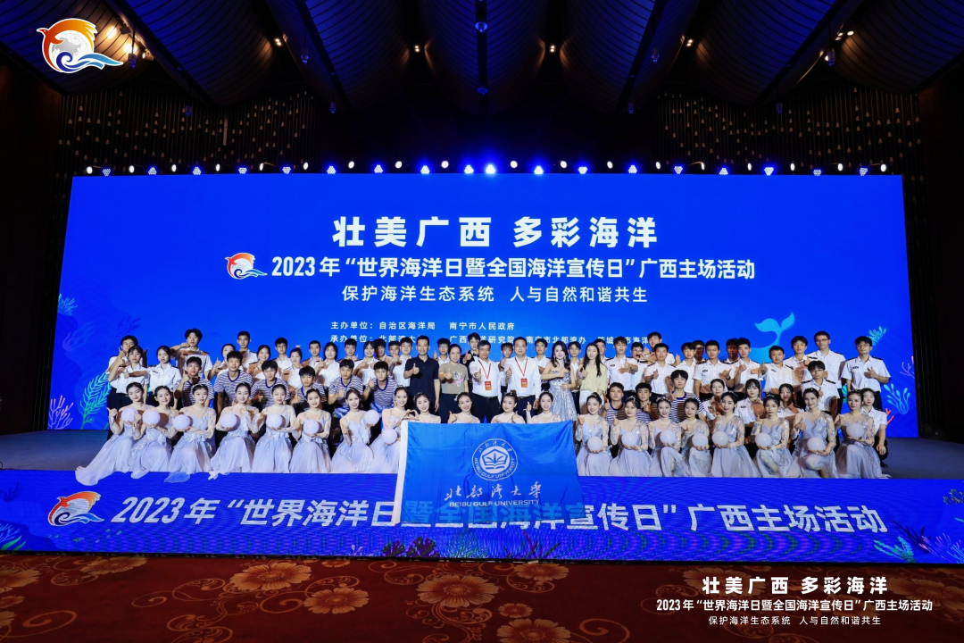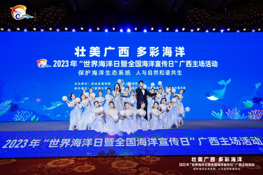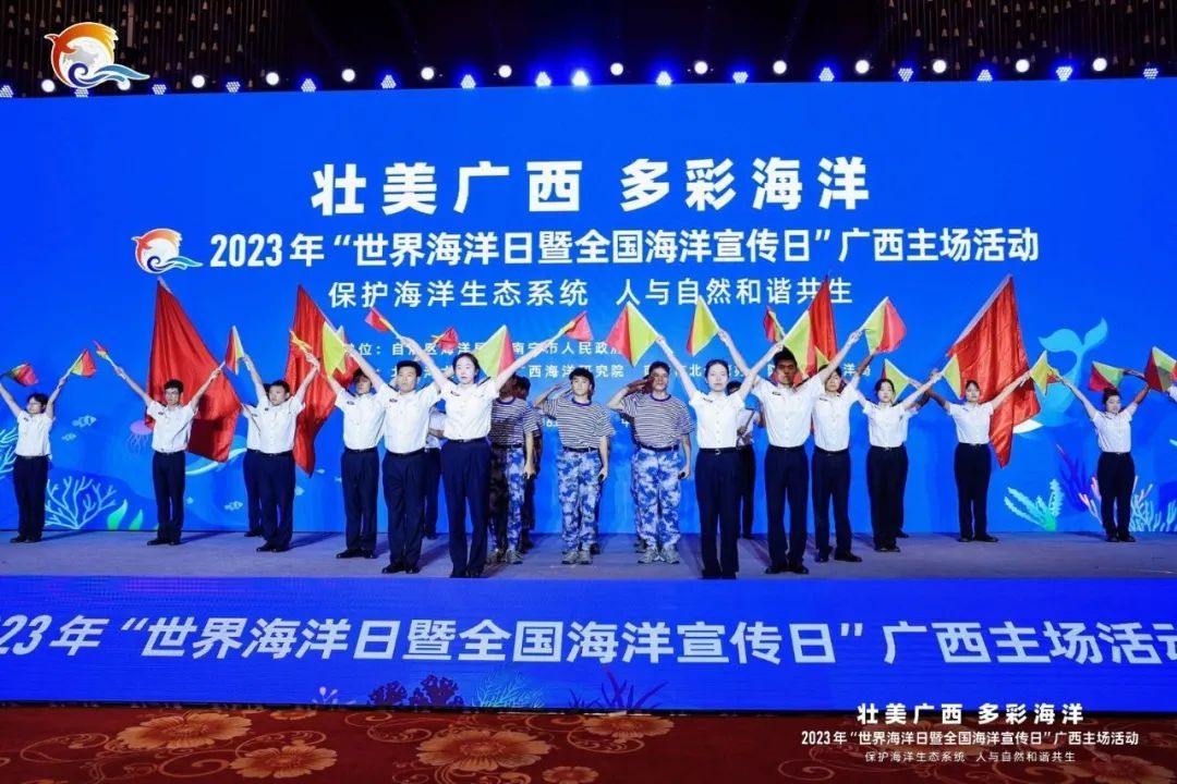 此次活动由自治区海洋局、南宁市人民政府主办,北部湾大学、广西海洋研究院、南宁市北部湾办、防城港市海洋局共同承办,旨在深入学习贯彻党的二十大精神,宣传贯彻习近平生态文明思想,提升全民海洋意识,推动社会公众保护海洋生态,助力建设海洋强国。我校作为承办单位中唯一高校单位,受邀出演开幕式开场与谢幕表演。