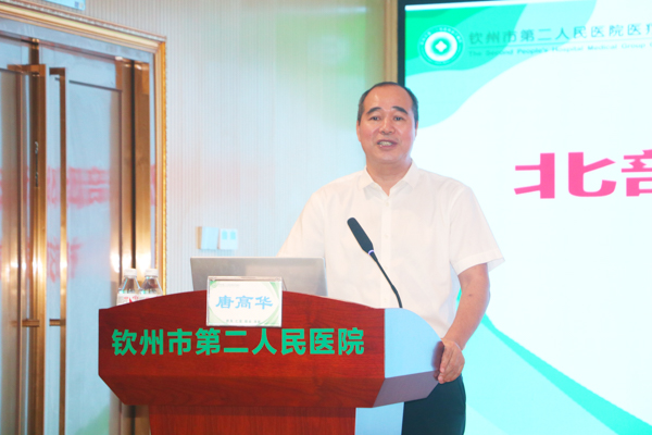 唐高华对钦州市第二人民医院对学校教学工作的支持表示衷心感谢并介绍了学校的基本情况。他表示,北部湾大学始终坚持立足北部湾,服务国家战略和北部湾区域经济社会发展,坚持立德树人的根本任务,致力于把学生培养成为具有较强实践能力、创新能力、就业创业能力的新时代高素质复合型、应用型人才。他谈到,希望此次校外实践教学基地授牌能成为推动双方进一步合作的新的契机,深度推进北部湾地区医疗机构与优质教育资源的有效对接,打造产教研融合新典范,共同守护广大人民群众的身体健康。