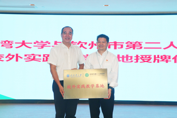 “北部湾大学与钦州市第二人民医院校外实践教学基地”牌匾