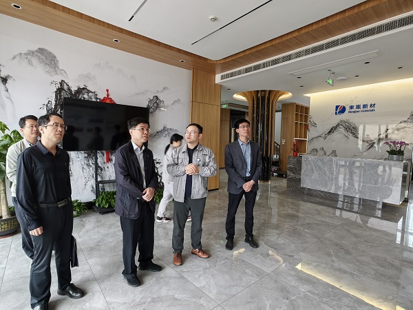 韩峻峰(左三)走访调研广西东岚新材料有限公司展厅