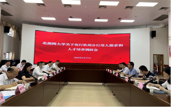 钦州市区农村信用合作联社和中国农业银行钦州分行的负责人分别介绍了本单位的组织架构、服务定位、业务经营情况、人才招聘方式及人才培养机制,并对我校在企校友的发展概况做了简要介绍。企业相关负责人纷纷表示,感谢学校长期以来为企业输送了大量优质人才,希望以此调研为契机,校企双方发挥各自优势特色,在应用型人才培养等方面建立深入、稳定、全面的合作关系,共同助力校企双方高质量发展。