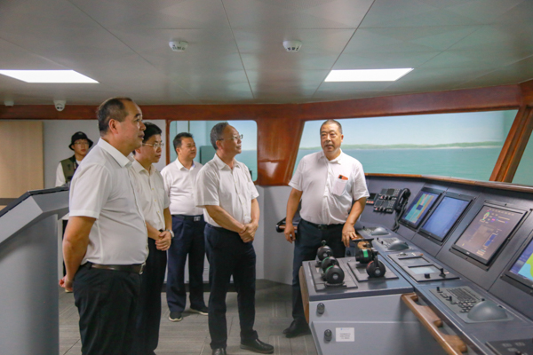 会前,严新平院士一行实地调研了轮机模拟实验室、航海模拟实验室和平陆运河北部湾大学西门码头。(胡雯诗 摄)