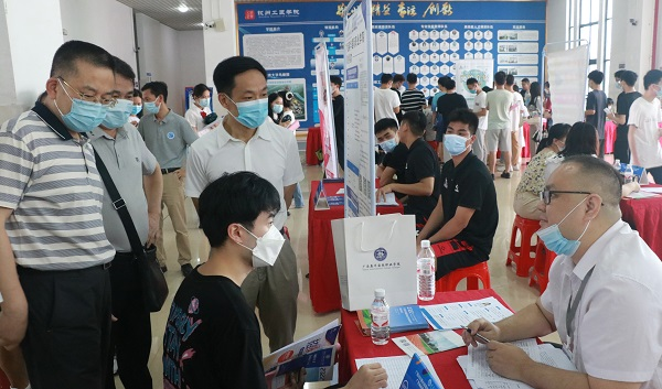 胡兆阳调研员(左一)、陈湘如副书记(左三)等与应聘学生、用人单位亲切交谈