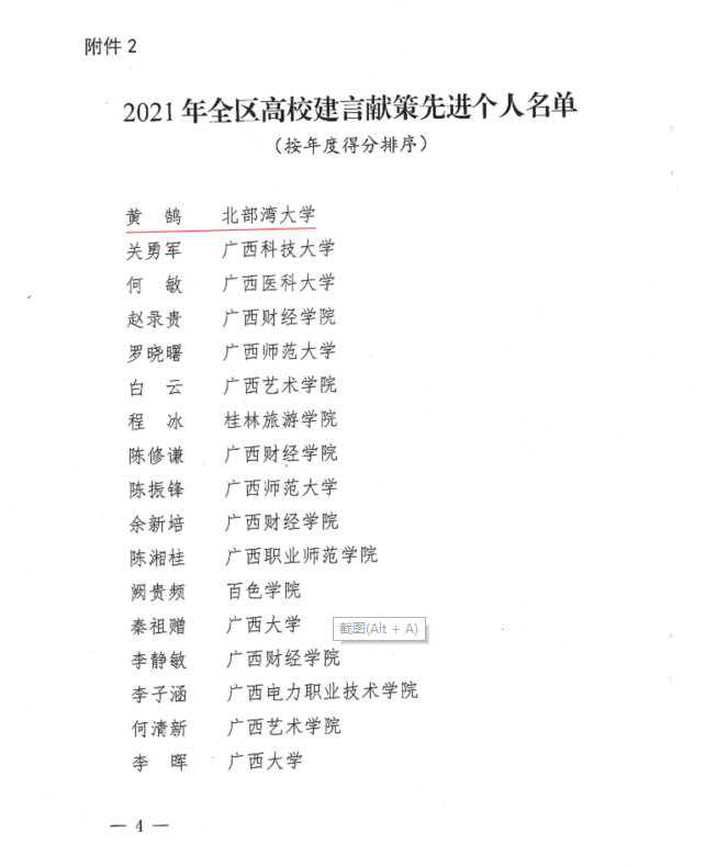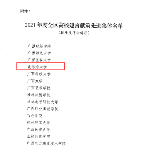 根据《自治区党委统战部自治区党委教育工委关于2021年度高校建言献策工作先进典型的通报》精神,我校荣获2021年度全区高校建言献策先进集体,副校长黄鹄荣获2021年全区高校建言献策先进个人称号。