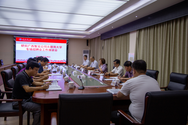 5月18日下午,钦州市副市长张红丹、广西智见公司总经理郭炤一行来校就广西智见北部湾大学专场招聘会筹备工作进行交流座谈。校党委书记韩峻峰主持会议。