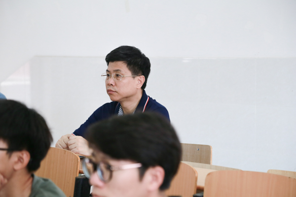 课堂上,韩峻峰凝神专注,认真听课,并细心观察学生们的学习状态和听课情况。课后,韩峻峰与两位教师进行亲切交流,他对任课老师认真的教学态度和良好的教学效果给予了肯定,并就如何进一步提升思政课教学技能和思政课教学效果提出了指导性意见和建议。他希望教师在进行教学活动时,能有效引导和激励学生积极参与课堂互动,加强教师与学生的课堂交流讨论,进一步激发课堂活力,提升整体教学质量。(韦鸥耘 摄)