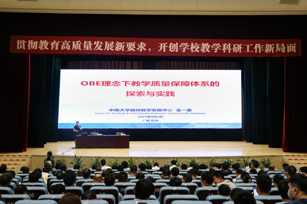 9月3日,在我校教学科研工作大会上,中南大学教师教学发展中心主任金一粟教授应邀请做题为“OBE理念下教学质量保障体系的探索与实践”的辅导报告。校党委常委、副校长唐高华主持。
