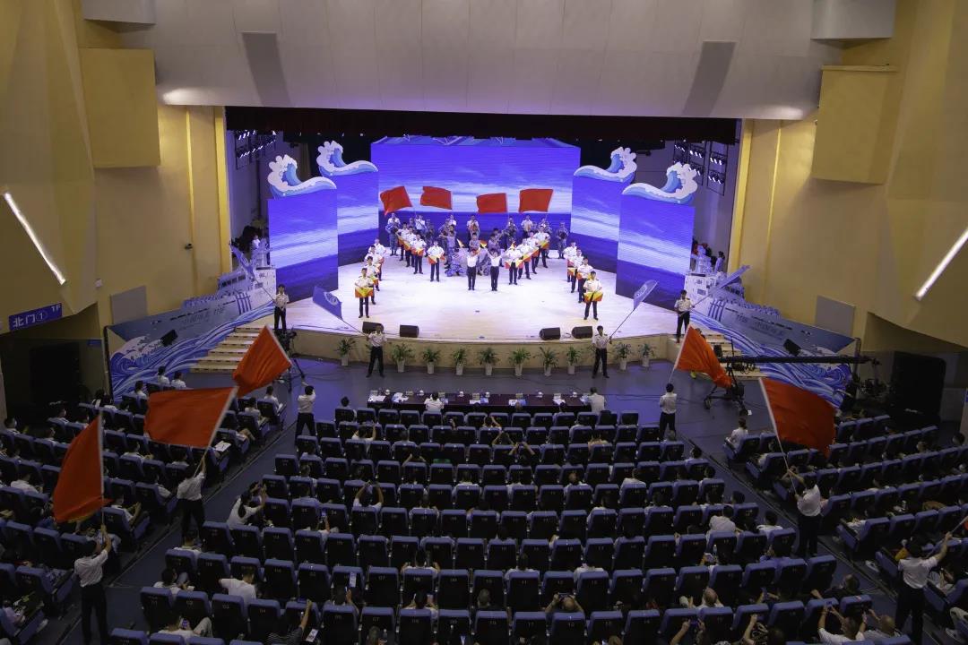 6月8日,北部湾大学礼堂,招展的红旗、帅气的旗语操、利落的匕首操,湾大学子用英姿飒爽的创意跑旗《我爱这蓝色的海洋》拉开了2021年广西“世界海洋日暨全国海洋宣传日”的序幕。