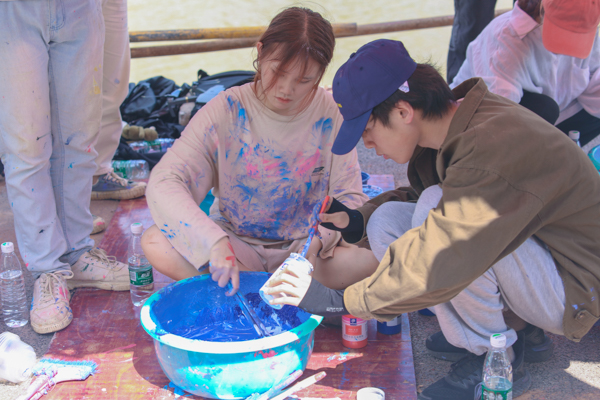 参加彩绘的罗缘同学说:“此次创作灵感来源于钦州这座美丽的城市,五只粉色海豚在丝绸似的波浪上跳跃,既代表着钦州的海域养育着中华稀有的粉海豚,也代表着这里是丝绸之路枢纽城市”。