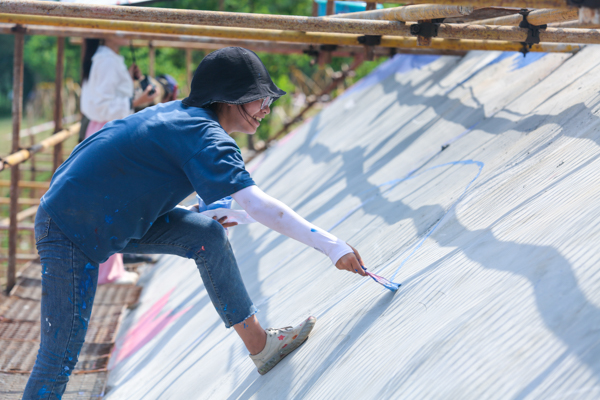 近日,学校陶瓷与设计学院的“红心向党·彩绘新时代·共筑中国梦”墙绘小分队再次出发,利用课余时间在钦北区上勒岭钦江畔的一面长约36米、宽约10米、高约9m的巨大墙体上绘制了一幅《海豚嬉戏图》。据悉,自开展党史学习教育以来,我校学子已经用手中的画笔为钦州市各定点扶贫村绘制了20余幅墙体彩绘,未来还将为钦北区11个镇83个村屯奉献50面墙体彩绘作品。