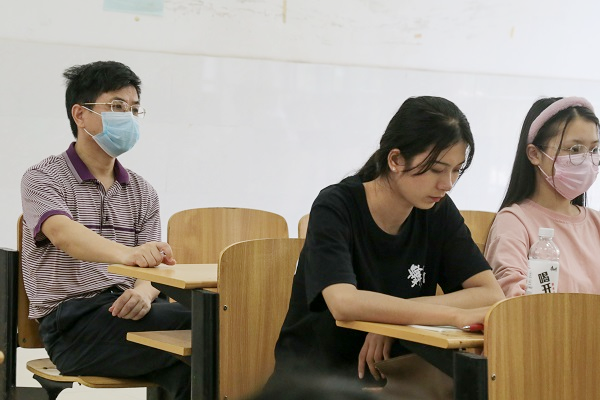 课堂上,韩峻峰凝神专注,认真听课,并对课堂情况进行认真记录。下课后,韩峻峰与两位教师亲切交流,对他们的教学态度、教学效果等给予肯定,认为教师们的课堂教学深入浅出,亲切生动,富有启发性、教育性和感染力,并就如何进一步提升思政课教学技能和教学效果提出了指导性的意见和建议。