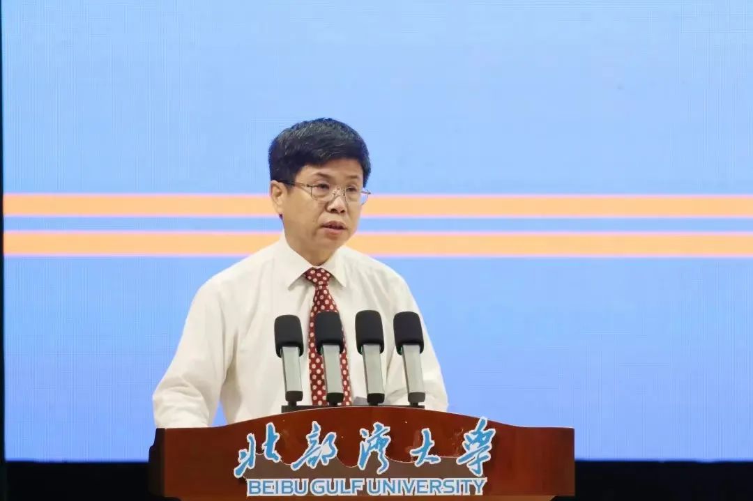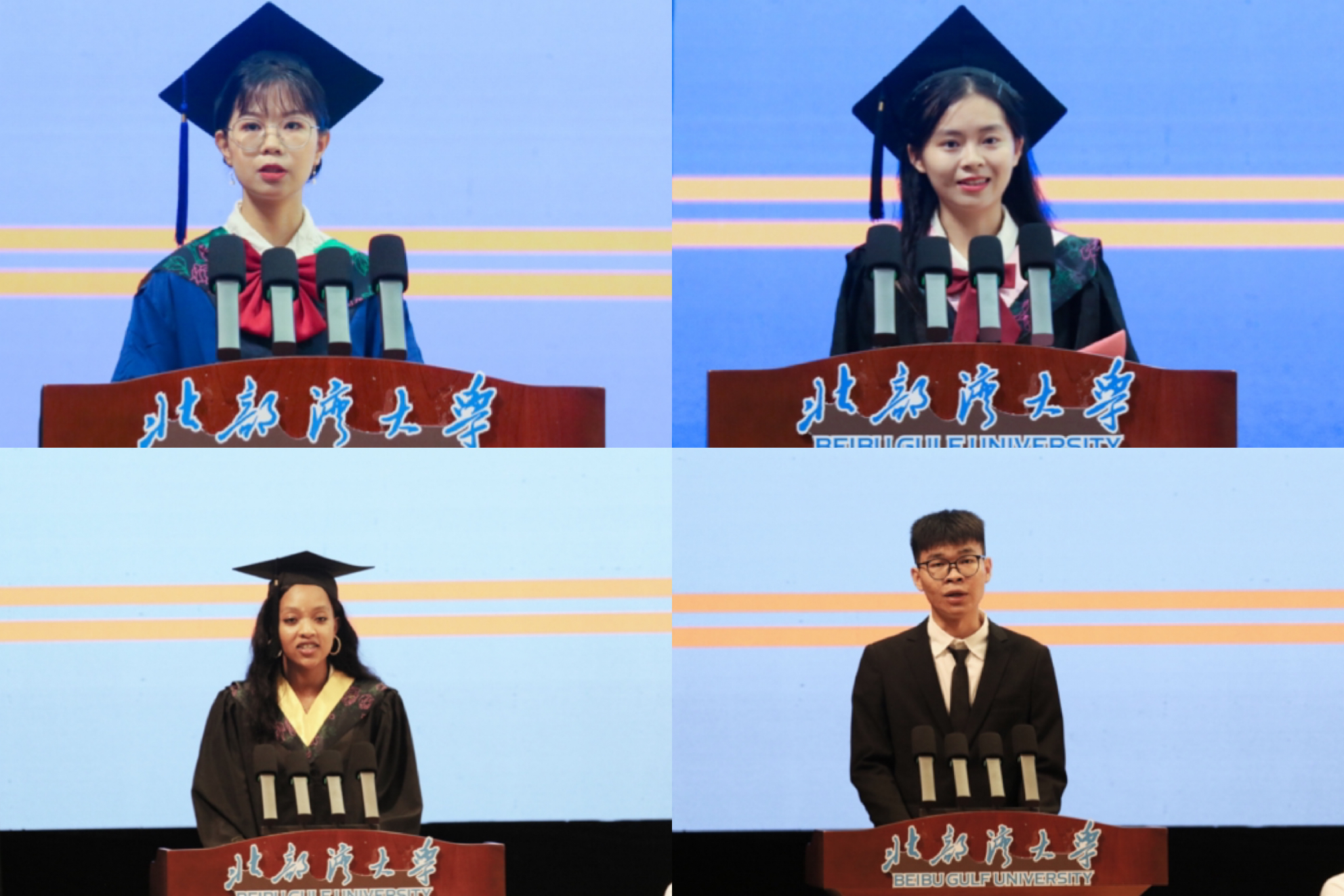 学校党委书记韩峻峰为毕业生们送上了毕业寄语。他表示,从地区师范到师专、学院,再到北部湾大学,湾大人初心如磐,不断践行“海涵春育,鹏举南天”的大学精神,不断弘扬“敢于向困难说不,敢于挑战不可能,敢于自我革新”的办学精神,不断抒写爱国奉献的辉煌篇章,2023届的同学们在湾大淬炼成长,用自己的青春故事也为学校历史画卷绘就了崭新的一页。