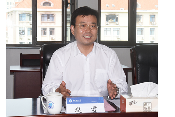 赵君书记对中国海洋大学在我校创建大学过程中,在师资队伍建设、学科专业建设、硕士点建设等方面给予的大力支持表示衷心感谢,并介绍了学校设立大学的基本情况。他希望中国海洋大学一如既往关心和支持我校建设发展,特别是在涉海学科建设,推进“双一流”建设,实现高质量发展等方面给予大力支持。
