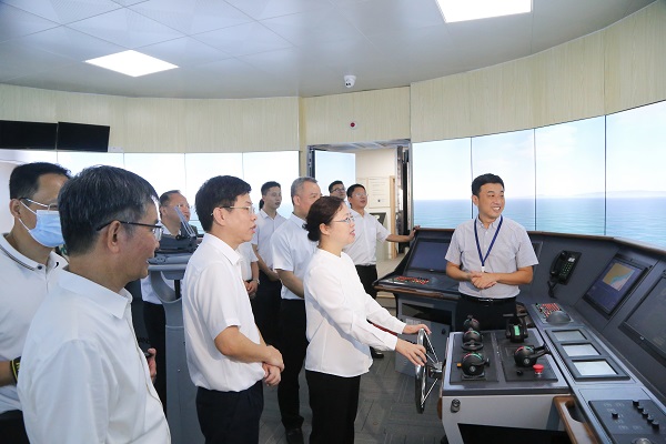 钟畅姿(右二)实地考察学校海运学院航海模拟实验中心