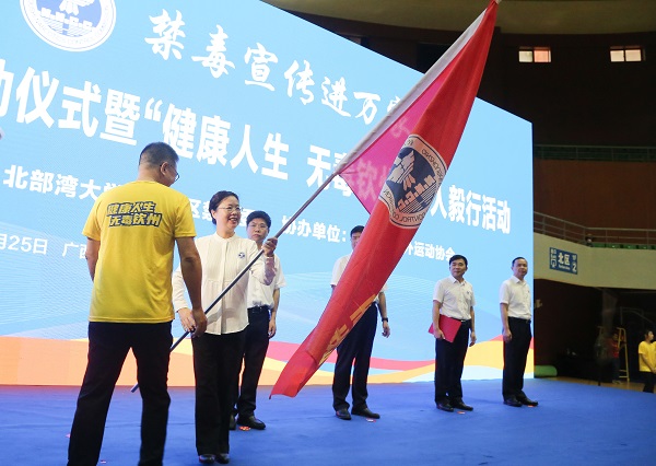 钟畅姿(左二)出席在我校举办的2023年钦州市“全民禁毒宣传月”暨“健康人生 无毒钦州”千人毅行活动