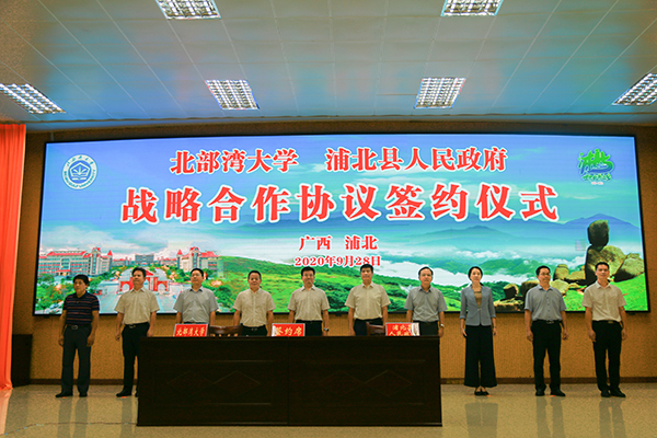 9月28日,我校与浦北县签署战略合作框架协议。学校党委书记赵君,浦北县委书记古保华、县人大党委会主任班博文、县长李遥、县政协主席陈增平与我校党校办、科技处、发规处等部门负责人共同见证签约。学校副校长黄鹄,浦北副县长梁光宁分别代表双方签约。