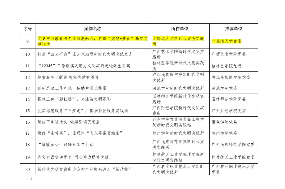 11月30日,从自治区党委教育工委印发的《关于公布全区教育系统新时代文明实践中心(所)创新工作典型案例的通知》获悉,由我校党委推送的创新工作案例“党史学习教育与专业深度融合,打造‘党建+美育’基层党建阵地”获评全区教育系统新时代文明实践中心(所)创新工作典型案例。