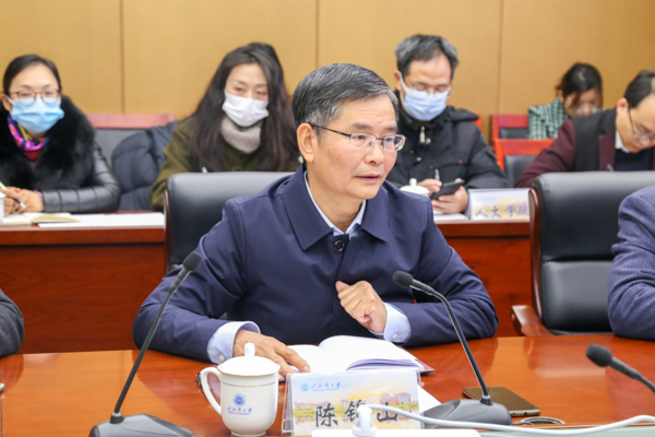陈锦山详细介绍了学校的发展历程、办学特色、办学规模、师资力量等情况。他指出,学校学前教育专业自设立以来,在人才培养、学科建设、社会服务等各个方面取得了突出的成绩,希望相关学院、专业负责人以共建北部湾大学第二附属幼儿园为新的发展契机,提升学科培养水平,提高人才培养质量,推进专业建设与实践的深度融合,为促进优质幼儿教育事业发展不断注入新动能。