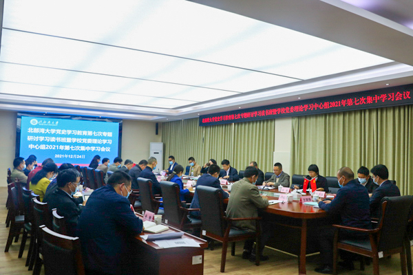 12月24日上午,学校在办公楼523会议室召开党史学习教育第七次专题研讨学习读书班暨学校党委理论学习中心组2021年第七次集中学习会议,围绕学习贯彻十九届六中全会精神、自治区第十二次党代会精神等主题开展专题研讨。校党委书记韩峻峰主持会议并就深入学习贯彻自治区第十二次党代会精神作出部署。校党委副书记陈锦山,校党委常委、副校长唐高华,校党委常委、纪委书记覃宇环,校党委常委、副校长陈磊,校党委常委、总会计师梁智出席会议。