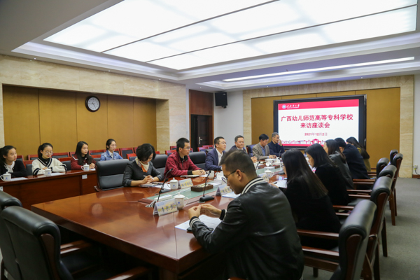 12月2日,广西幼儿师范高等专科学校副校长李艳荣一行6人到我校调研交流。校党委常委、副校长陈磊出席座谈会,学校教务处、科技处、招生就业处、教育学院、体育教学部相关负责人参加。