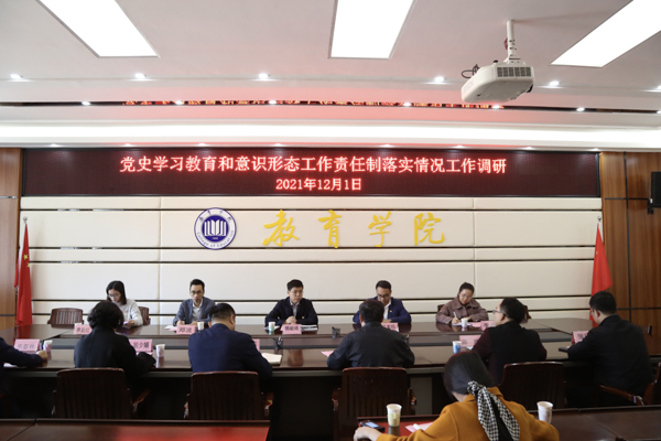 12月1日上午,学校党委书记韩峻峰到教育学院开展党史学习教育和意识形态工作责任制落实情况工作专题调研。