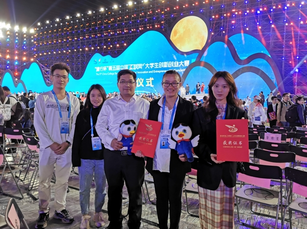 我校银奖项目在颁奖现场(右二为黄桂云)