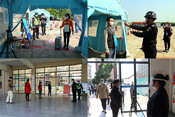 动员会后,学校教职工根据模拟设计的第一批学生返校报道后在车站、校门、宿舍、食堂、教学楼、集中隔离观察区等7个场景进行了应急演练。每一个场景工作人员都严格按照检测步骤,对学生进行检测并针对正常、发烧等不同情况按照应急预案进行了处置演练。