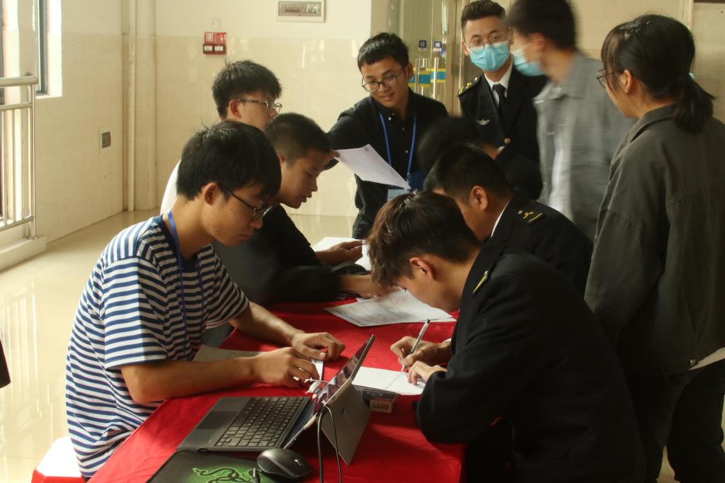 当天还有不少海运学院的往届毕业生以“招聘方”身份重返母校,他们对母校的培养表示感谢,同时也为学弟学妹提出了宝贵建议:“海运学院是可以帮助你实现航海梦的跳板,只有有恒心,努力在船上工作,就能实现你的远洋梦。”中远海运船员管理有限公司上海分公司2020届毕业生吕兴超对前来洽谈的学弟学妹说。“船上的生活是丰富多彩的,但需要你们通过大证考试才能亲身体验。”中交广州航道局有限公司海洋工程分公司2021届毕业生龚号文鼓励学弟学妹,要努力学习,尽早谋划自己的人生蓝图。