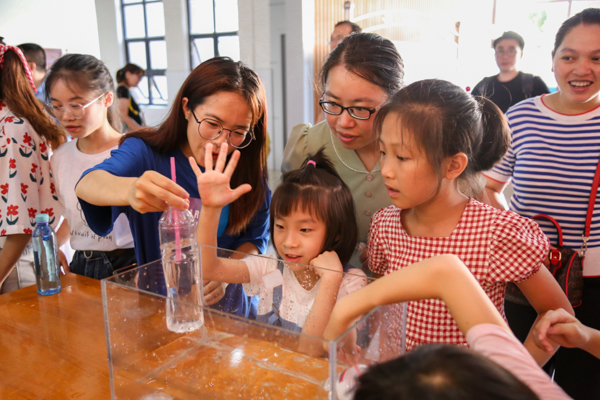 “今天参加科普日活动很高兴,因为这是我第一次体会到做实验带来的乐趣”“展览设计真好,知识性很强,很科普”“我喜欢老师的讲解”……6月19日,由学校党委宣传部、理学院教师党支部、学生党支部、物理教研室联合主办的以“学党史、办实事”为主题的科普开放日活动在1号教学楼顺利开展,180余名“湾二代”在父母、老师的陪伴下参加了科普开放日活动。