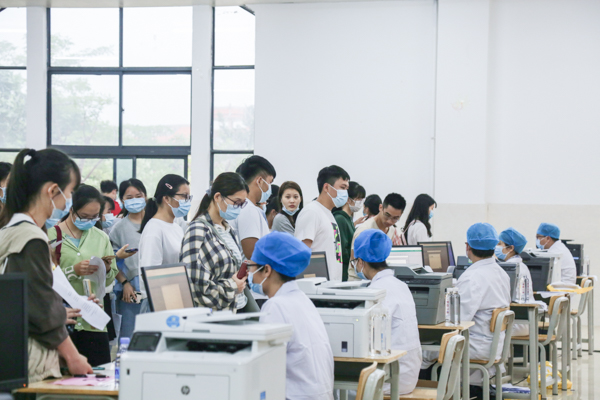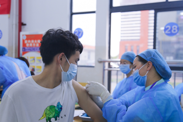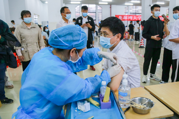 据统计,我校疫苗接种工作将在3至4天内完成近2万剂次接种。本次疫苗接种采取分时段、分批次进行的方式,由市卫健委、市疾控中心安排医务工作者进校园为师生接种。(朱天宇 覃瑞倩 关丽君 覃美 摄)