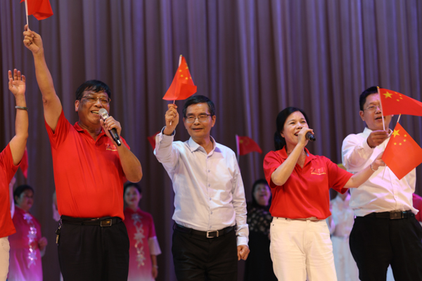 陈锦山副书记和表演者们共同演唱《我和我的祖国》