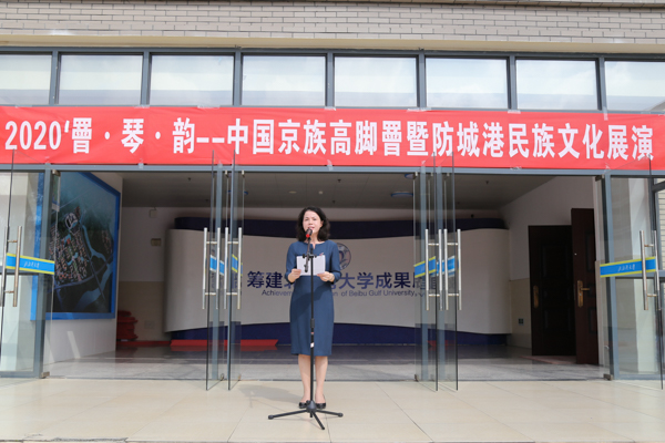 在开幕式现场,覃宇环代表学校对各位领导嘉宾的到来表示欢迎。她表示,长期以来,学校与防城港市各相关企事业单位在海洋文化、京族文化研究方面开展了深入的交流合作,取得了较好的社会反响。希望通过此次展演活动的开展继续传承和弘扬中华优秀传统文化,更好地建设地方文化品牌,为推动和促进民族文化创新发挥积极作用。苏世成在讲话中指出,希望通过这次展演能够增进北部湾大学师生对京族文化的了解,促进大学文化建设,预祝展演活动取得圆满成功。最后,麦建祥代表防城港市社科联向学校赠送了图书、摄影作品、高脚罾和天琴。随后,领导嘉宾与钦州市民、湾大学子参观了民族文化摄影展。