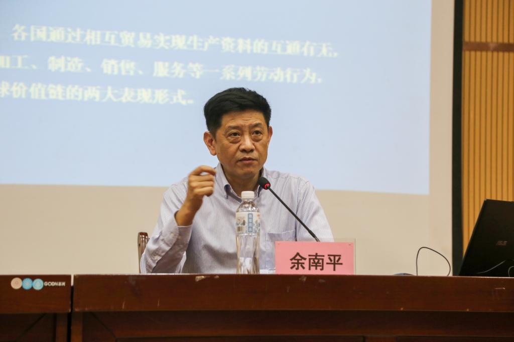 讲座中,余南平教授认为,全球价值链描述的是一项产品从理念到最终使用的一系列过程,本质上是一种全球性的劳动分工。他指出,东盟的全球价值链参与有着明显的采购商驱动特征,东盟依托于交通、人口、资源等优势,形成以劳动密集型产业为主的产业体系,但仍依赖东亚区域供应链与欧美销售链,中国东盟的未来既有合作也有竞争。余教授用丰富的数据分析了东盟在全球价值链及区域价值链的发展情况、趋势及其对广西沿海沿边的经济发展的促进作用。