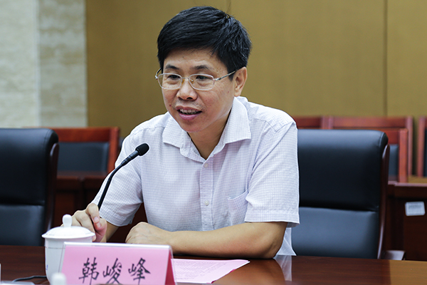 韩峻峰校长为吕洪安主席介绍学校发展情况