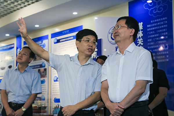 会前,吕洪安主席到学校筹建北部湾大学成果展详细了解了学校的发展历程和丰硕的办学成果。他赞许学校办学特色鲜明、办学成果显著。(蒙恺妮 摄)